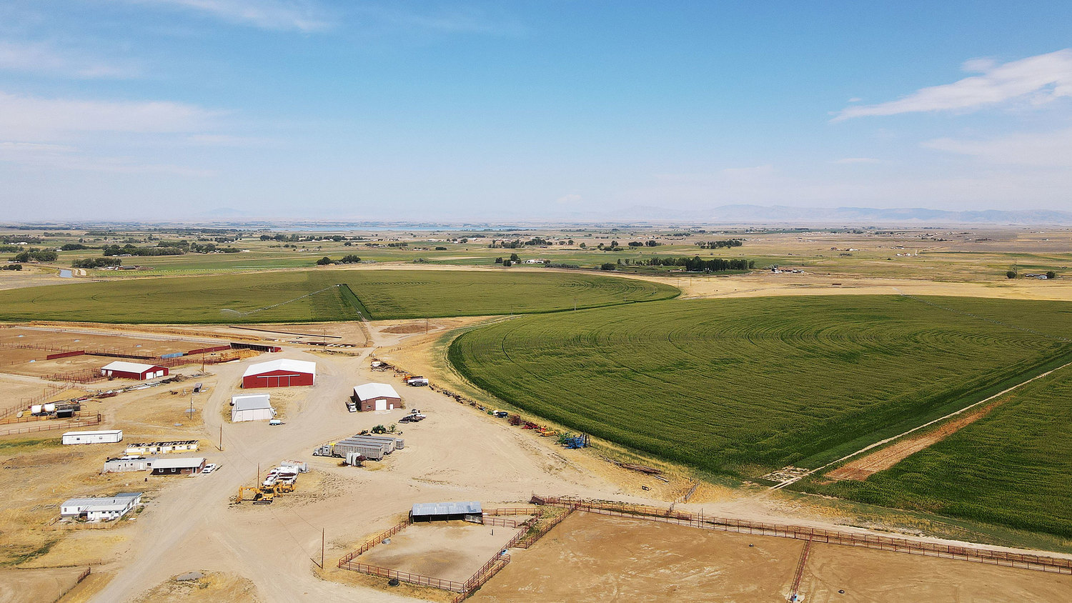 The irrigated lands are primarily pivot irrigated with 5 pivot systems. The deeded lands are located in two units, the Headquarters (Herman Place) consist of 1,413 acres with three newer Zimmatic pivots and the two Valley Farm consists of 233.7 acres with two Valley pivots with one being a wiper. Two additional pivots on 190 acres are leased to round out annual feed production needs for feeding 3,500 cattle. The alfalfa stands are mostly newer top-quality plantings.