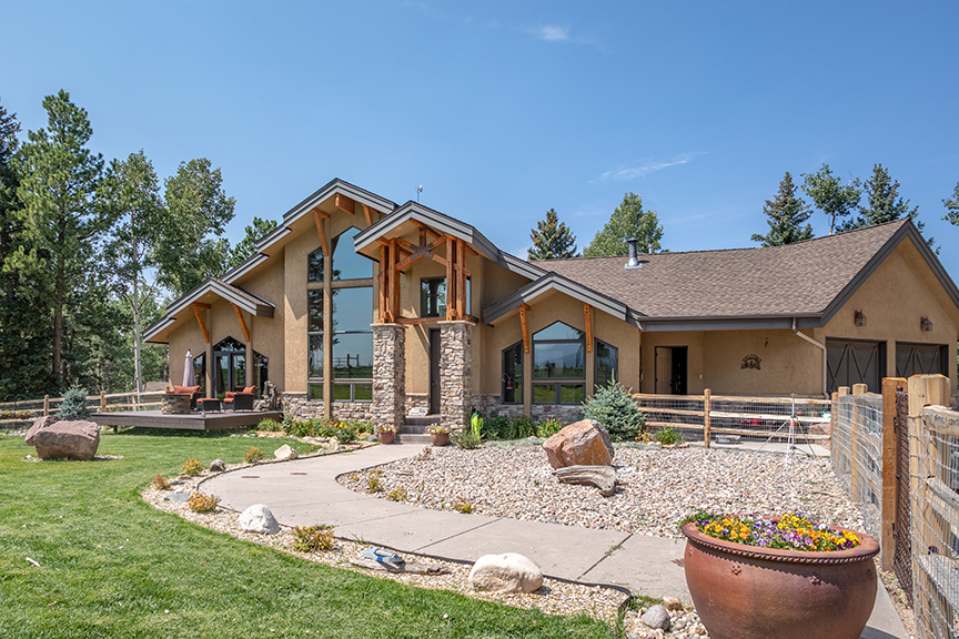 Sliding R Ranch is a Colorado dream home with it's stucco and stone exterior and warm custom interior finishes; all nestled on 35 acres of pines, aspens and a stunning Pikes Peak mountain view. The home consists of 4,374 square feet with rich hardwoods and a floor-to-ceiling stone fireplace in the great room with adjoining gourmet kitchen featuring nothing but the best. The main floor master suite is stunning and walks out to a private patio retreat. The fully finished walkout basement is complete with wet bar and 2nd fireplace in the cozy family room. There is a secondary room under the garage that adds to the footprint of the basement. Other features include valued/beamed ceilings, custom woodwork, a stone breakfast bar with farmhouse sink, built in stainless appliances and a coffee bar. Horse lovers will delight over the 3,400 square foot seven-stall barn with custom stall fronts extra wide alley-way, water, electric, shop, dog kennels, hay storage, turn-out for the horses off the barn as well as cross-fenced pastures, plus a private bath with laundry facilities.