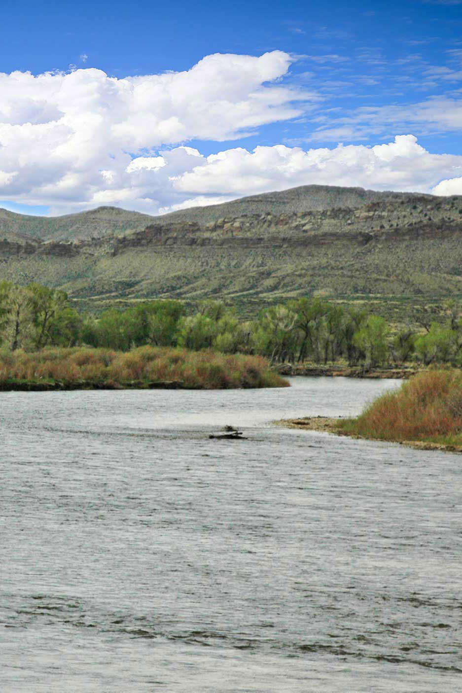 Rawlins, Wyoming is an arid, cool climate. Annual precipitation at the airport is nine inches. This increases at the higher elevations of the ranch. The warmest month of the year is July with an average daily high temperature of 84°. The coldest month is January with an average high of 31° and lows of 13°. Humidity is quite low. Average yearly snowfall is 52 inches. Elevation runs from 6,400 ft. at the river to 7,700 ft. at the highest point on the property.