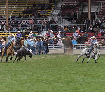 The main events in the Round-Up are: Bareback Bronc Riding, Saddle Bronc Riding, Bull Riding, Steer Roping, Steer Wrestling, Team Roping and Tie-Down Roping. The All-Around Cowboy award goes to the competitor who earns the most prize money in more than one event. Other events include women’s Barrel Racing, Indian Relay Racing, Wild Cow Milking and Indian dancing.